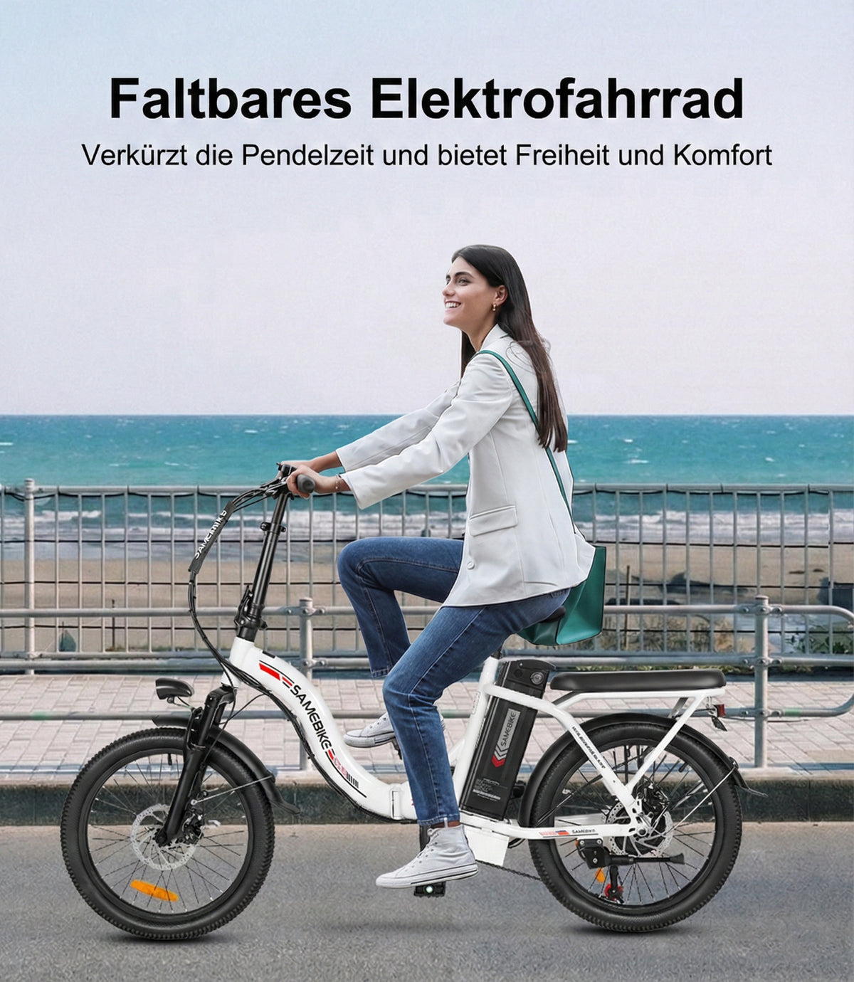 Erleben Sie entspannte Ausflüge entlang der Küste und maximale Flexibilität im Alltag mit diesem praktischen, klappbaren Elektrofahrrad, das sich mühelos überallhin mitnehmen lässt.