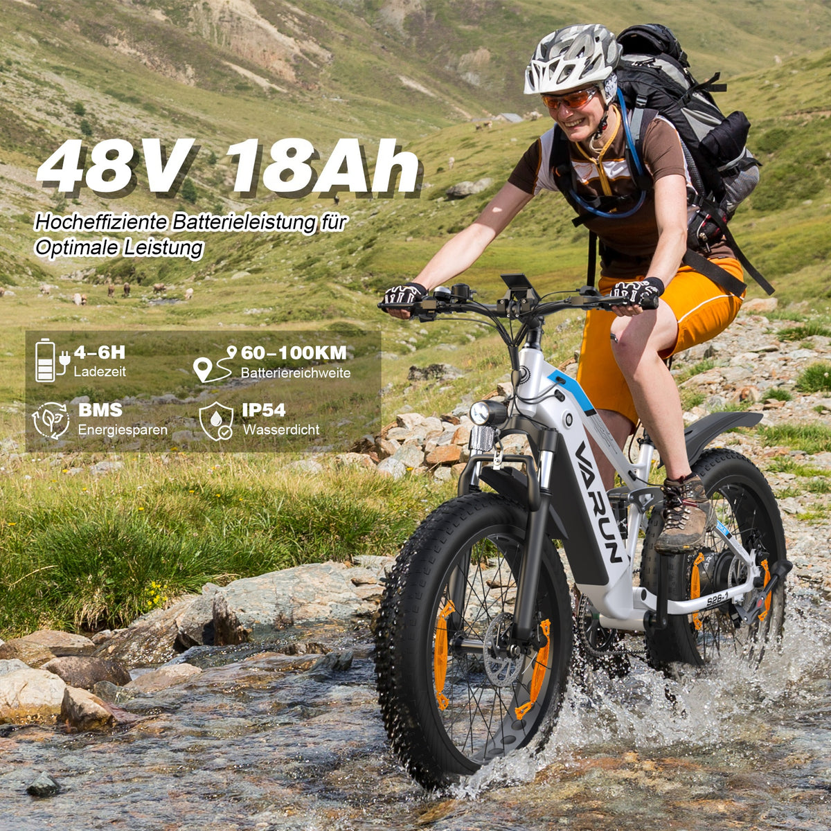 Grenzenlose Abenteuer: Die hocheffiziente 48V Batterie und IP54 Wasserdichtigkeit bringen dich mit optimaler Leistung überall hin.